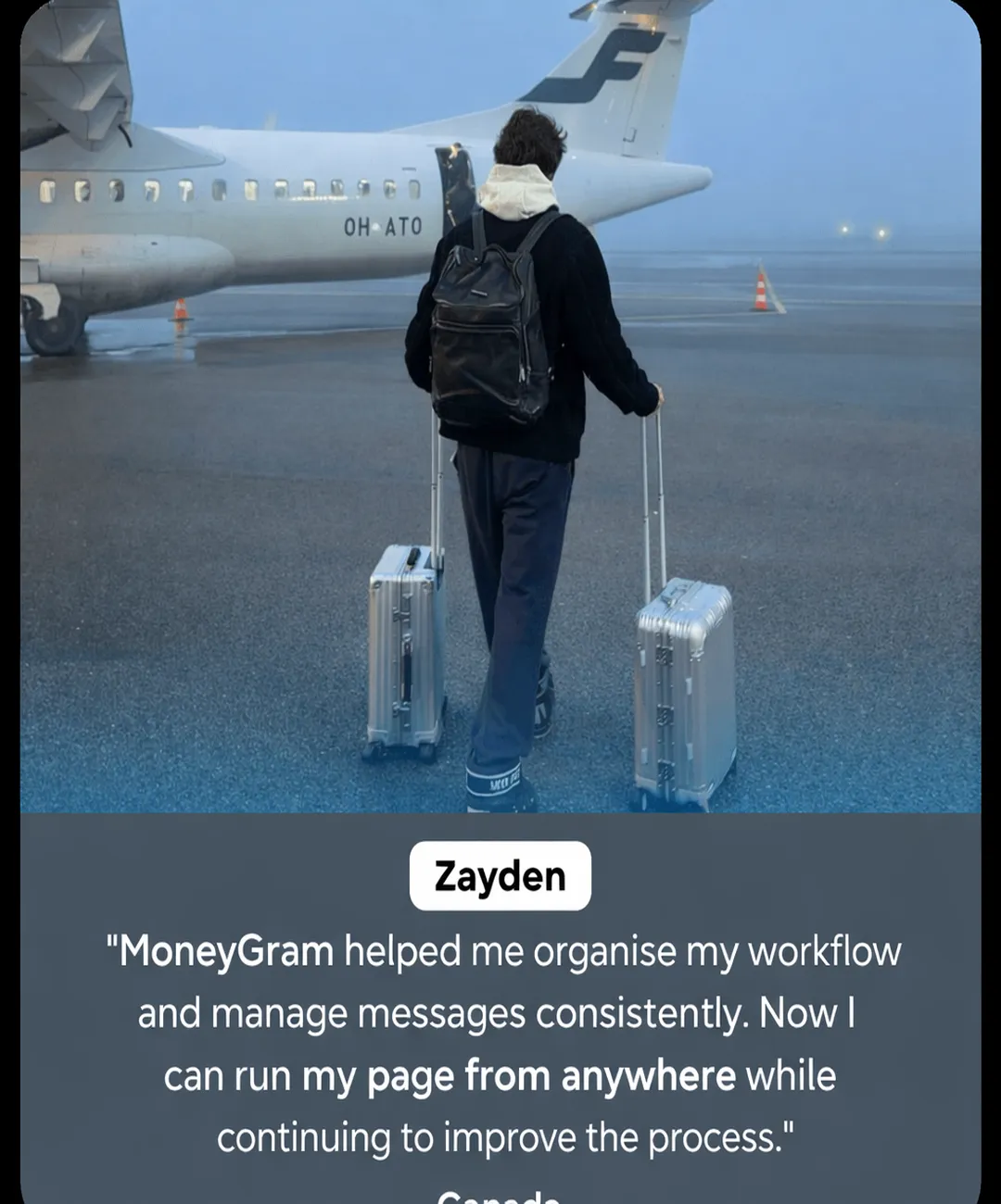 At MoneyGram, we break that cycle with our private expert network, with over 200M+ views and 2M+ followers, ready to help you win...